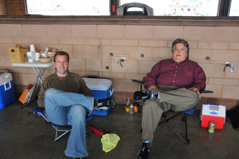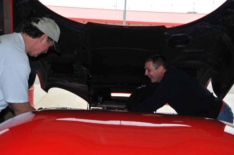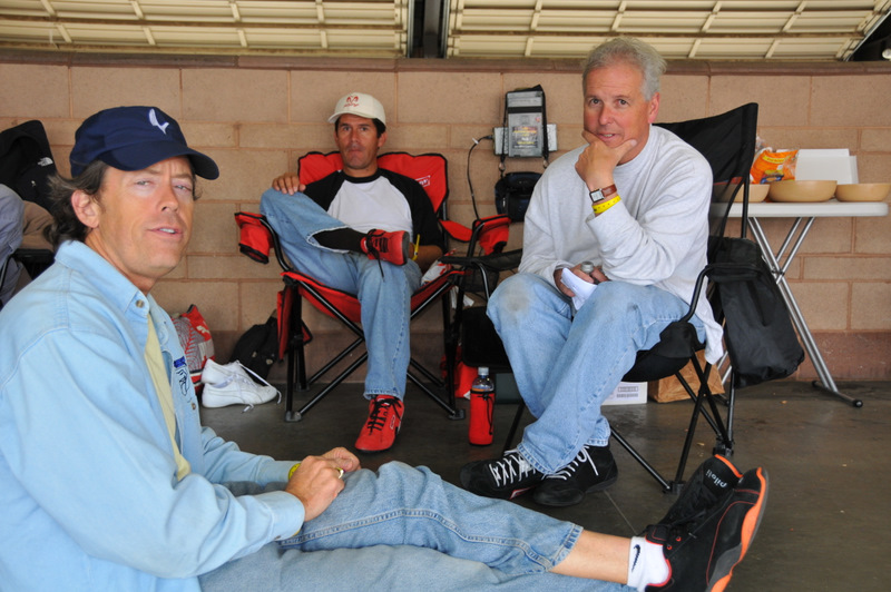 Scott and Mike planning another car swap on the track