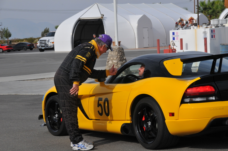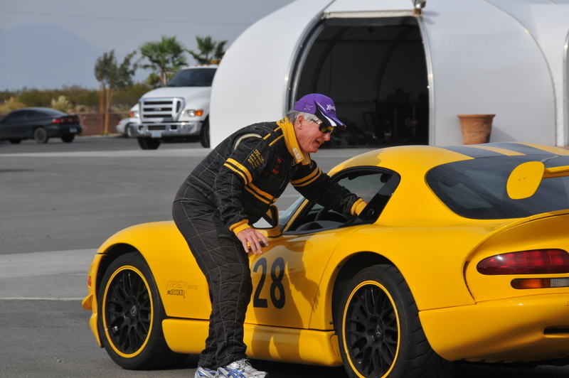 Skip doing his last check before his students go out on track.