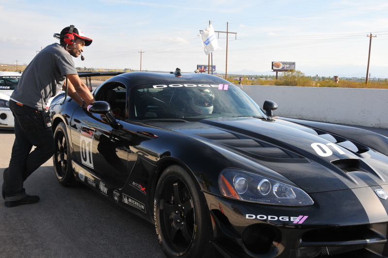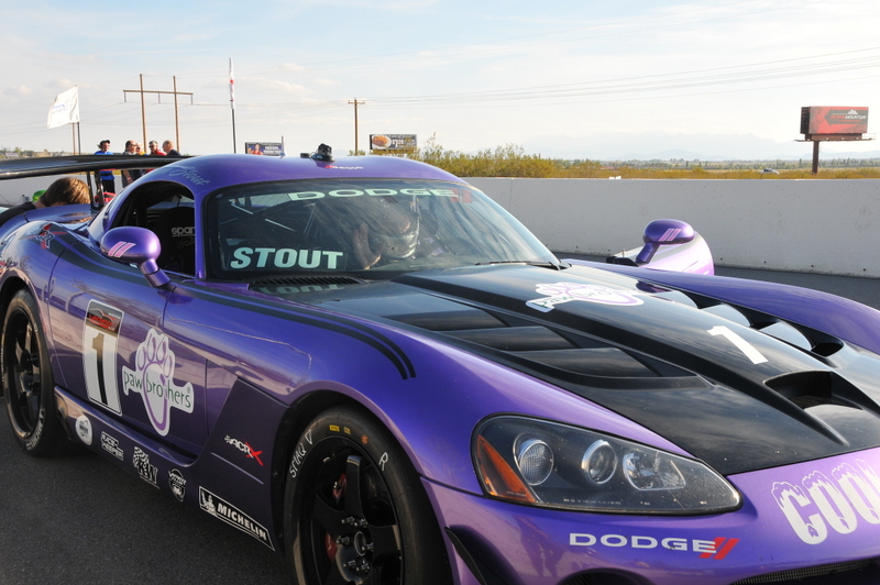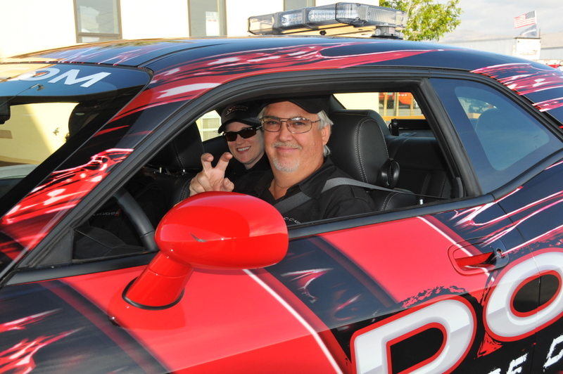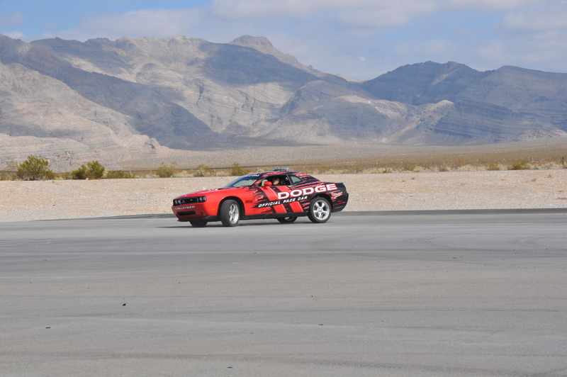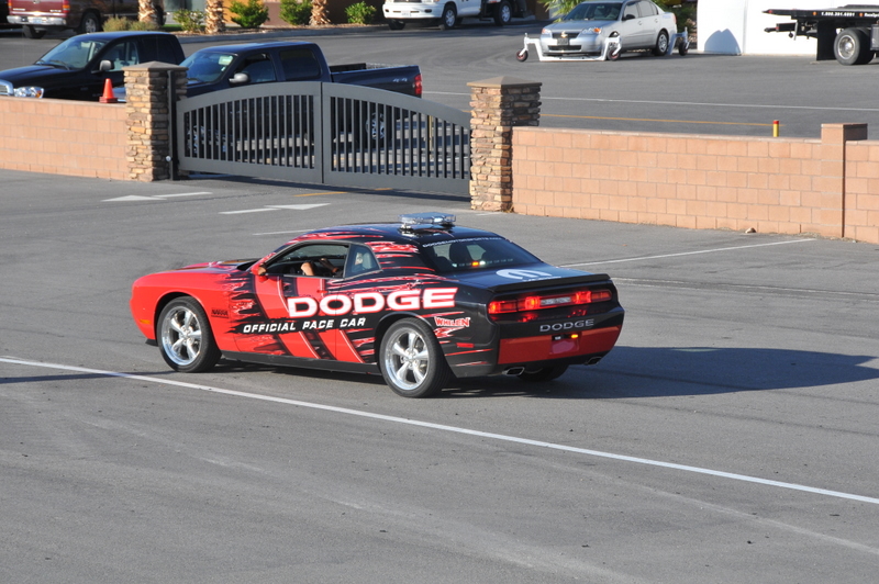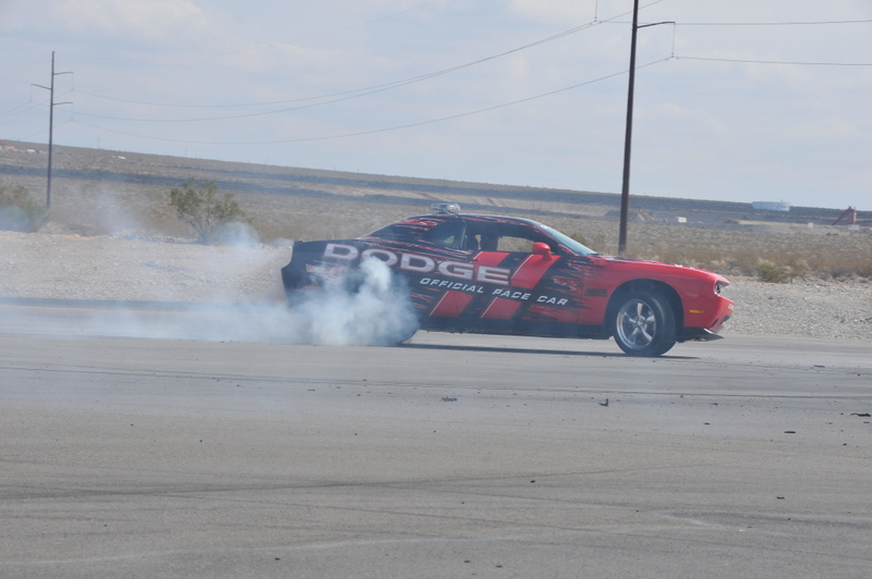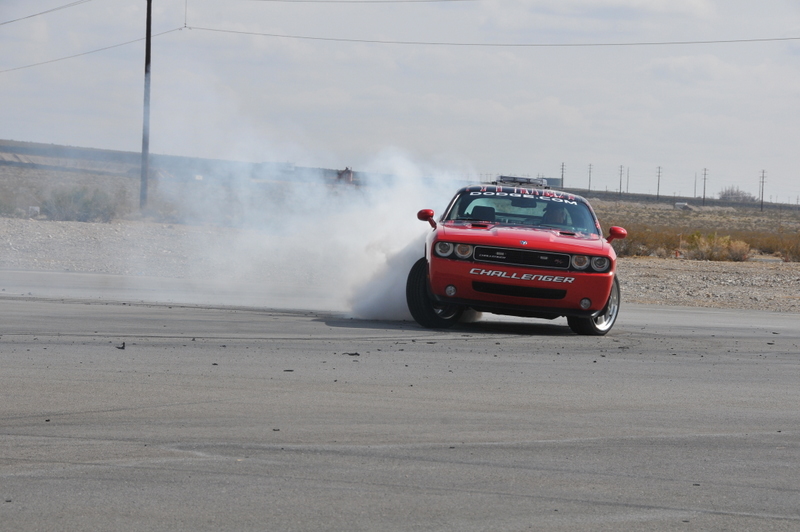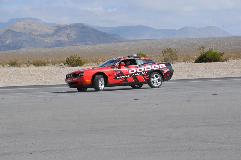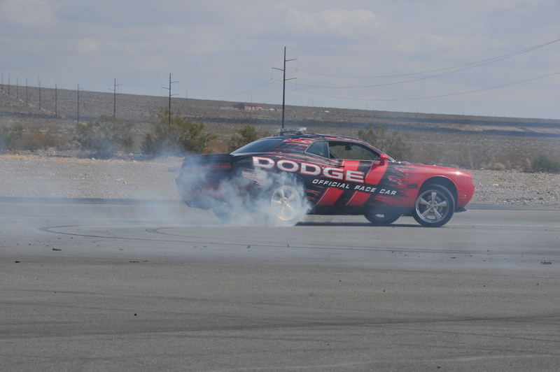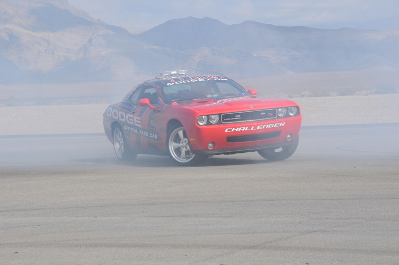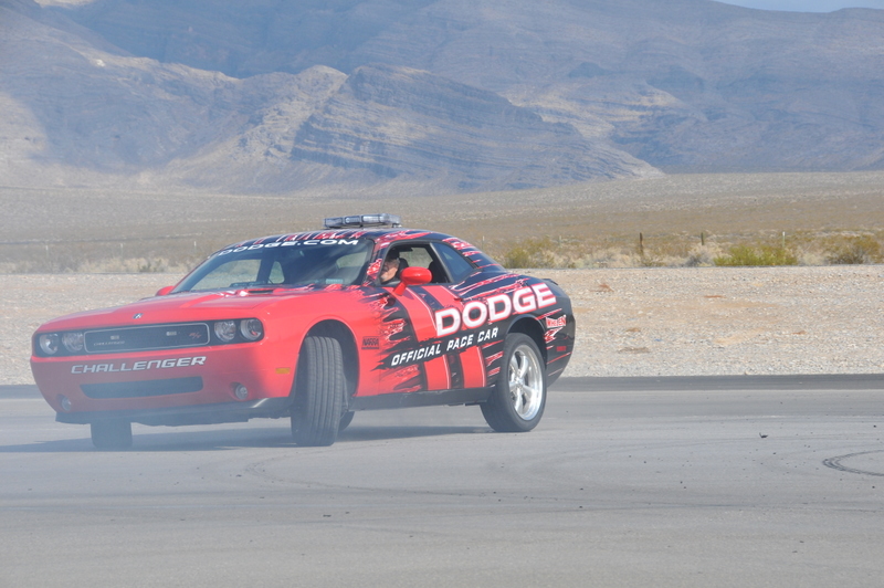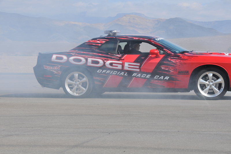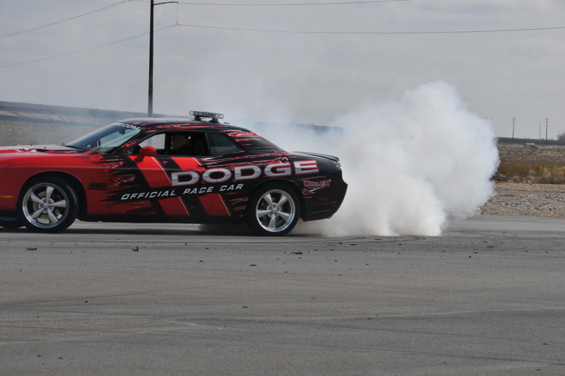 JonB scrubbing the tires on the Challenger pace car.