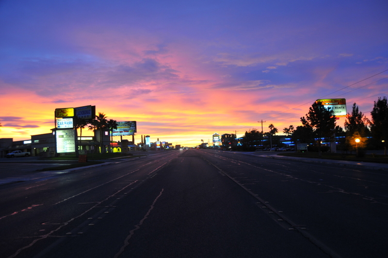 Nope, I'm standing in the middle of the highway in Pahrump, NV staring at the most incredible sunrise.