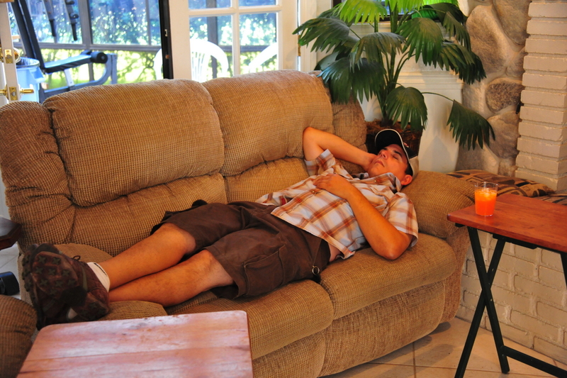 After a great feast, dessert and 1 margarita, Angel passed out !
