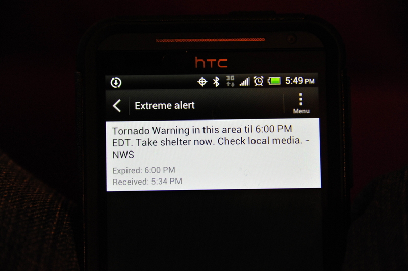 Check out my phone...at 5:30pm I got a Tornado Warning. We went outside to look for Dorthy and Toto