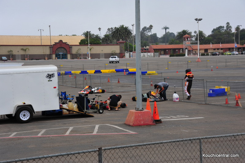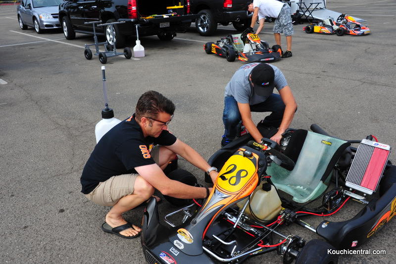 Making some last minute chassis adjustments to Cuz Mike's kart
